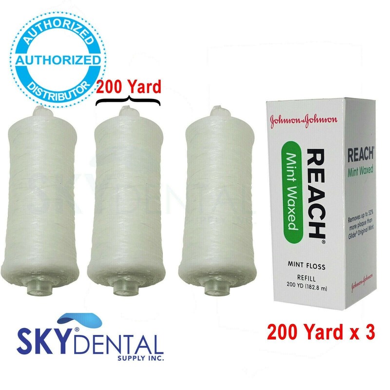 Johnson & Johnson 3pk Johnson & Johnson Reach Mint Floss Waxed refill spool 200 yards 2733 Flosser