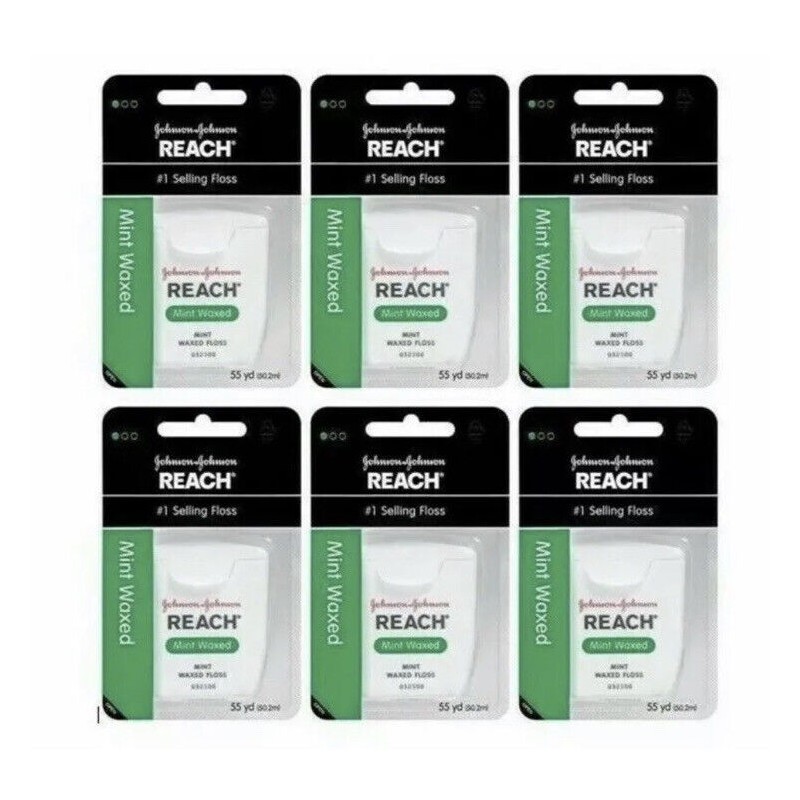 Johnson & Johnson 6 Pack Reach Mint Waxed Dental Floss -55 yards Each Ships Free!!