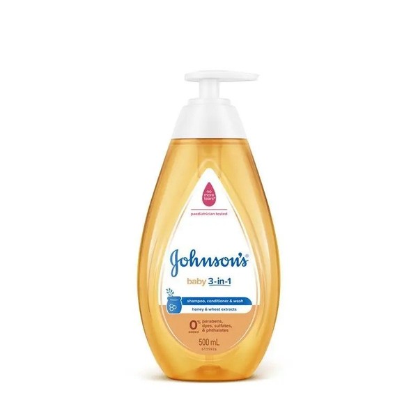 Johnson's Baby 3-in-1 is a hypoallergenic shampoo, conditioner & body wash that gently cleanses & easily rinses. With honey & wheat extracts, it leaves hair soft, shiny and manageable.
