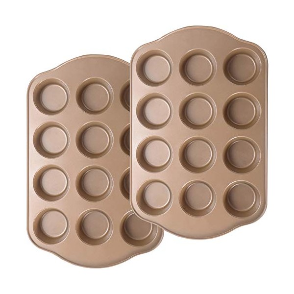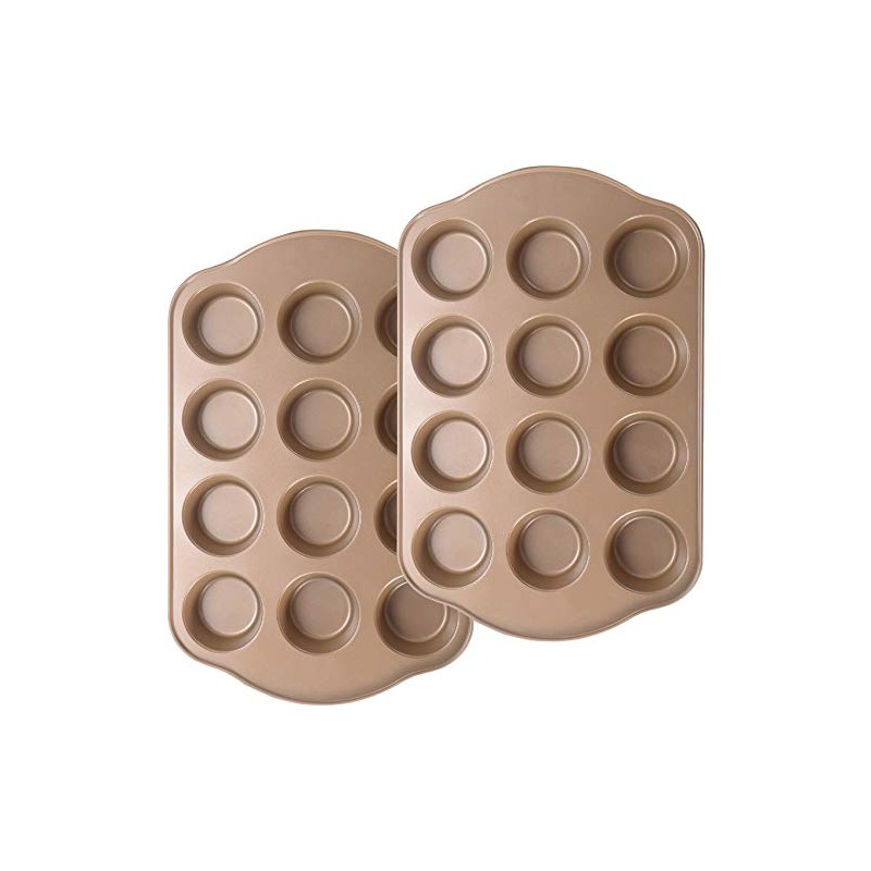 - EXCLUSIVE VALUE MUFFIN PAN SET: The muffin pan nonstick set of 2 includes 2 pieces 12 cup muffin pans,champagne gold color,meet most of your daily cupcake pans need.Flexible and stackable,making metal baking pans store easily.
