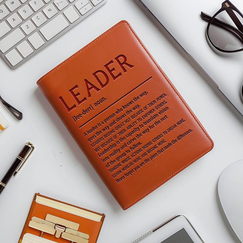 JOHSBYD Leader Definition Leather Notebook Boss Appreciation Gift Leader Boss Supervisor PM Mentor Retirement Gift Coworker Farewell Writing Notebook (a leader is a person)