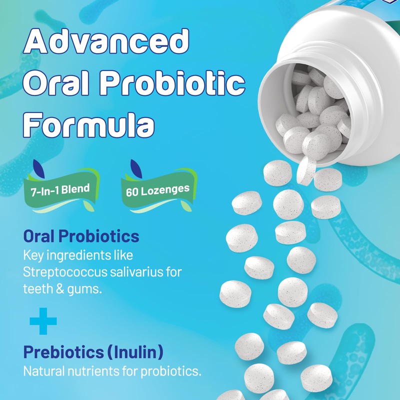 - FAST-DISSOLVING & EASY TO USE: Designed for convenience and optimal absorption, our dental probiotics tablets melt quickly in your mouth, delivering probiotics right where they're needed. Each bottle contains 60 tablets. Just place one in your mouth dailyno water or chewing required.
