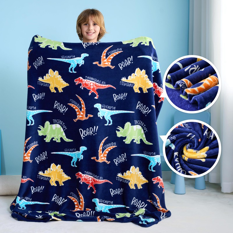 - Soft, Warm & Lightweight Blanket: The luminous blanket gift for kids is made of high quality plush flannel fabric with warmth and antistatic, the soft and skin-friendly touch makes your skin feel smooth. 50x60in dinosaur blanket is large enough for kids and single adults. It is lightweight and durable, suitable for outing or home use.