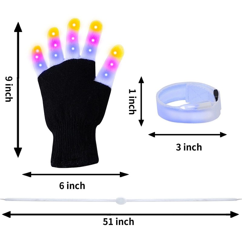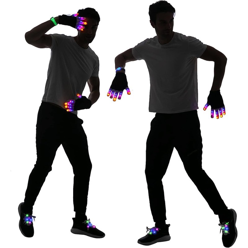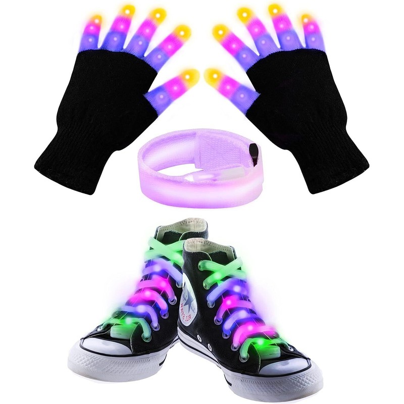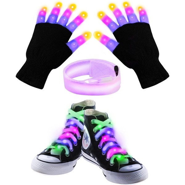 JoieDomi LED Light Up Gloves, Shoe Laces, Bracelet, 3 Multicolor Modes