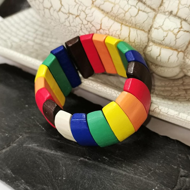 Embrace the vibrant colors of this eye-catching wooden beads stretch bracelet.