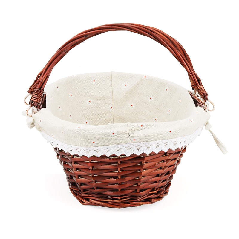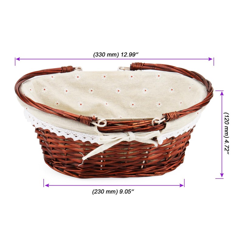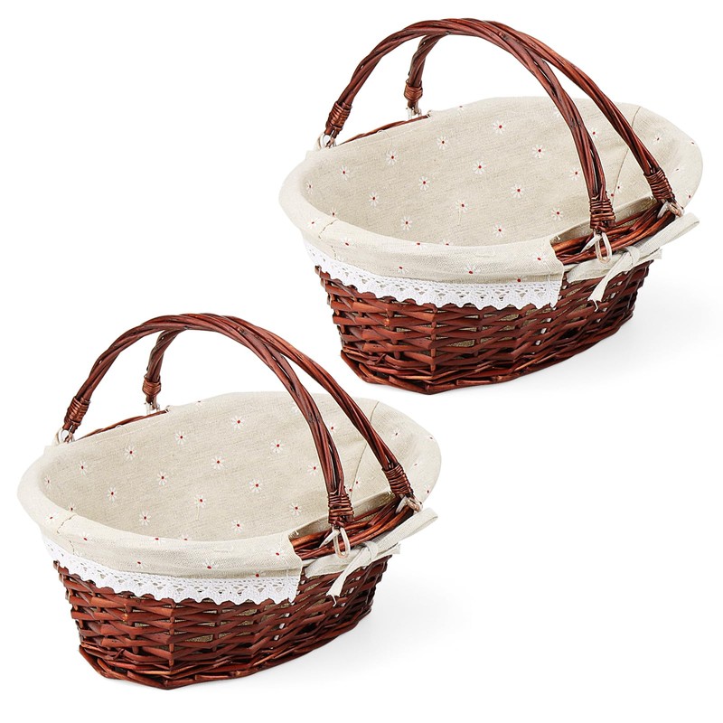 JOIKIT 2 Pack Wicker Woven Basket with Handle, Oval Wicker Picnic Basket with Linen Cloth Lining, Brown Woven Willow Basket for Eggs, Candy, Gift, 30 x 23 x 12cm
