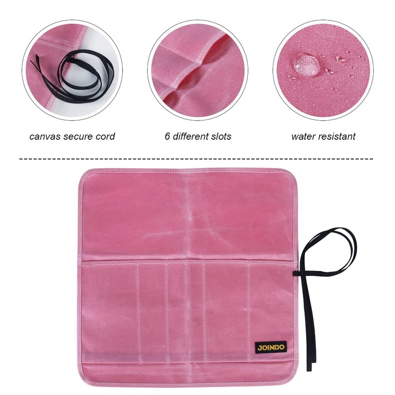 JOINDO Heavy Duty Waxed Canvas Knife Bag with 6 Slots, Professional Chef Knife Roll Bag, Knives Pouch, PINK