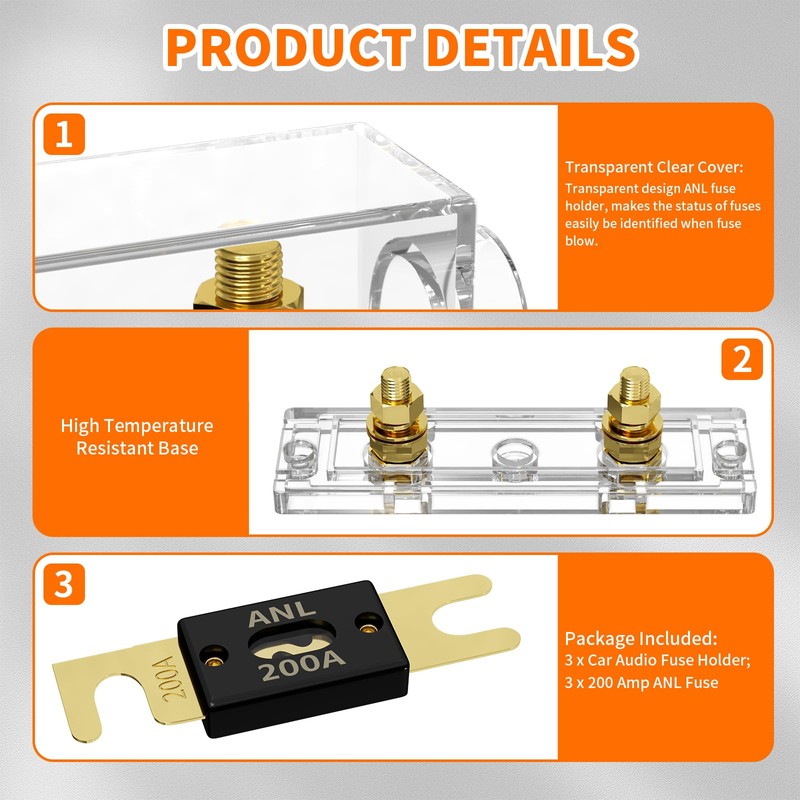 - Transparent: The cover and base of this 200A ANL fuse block is crystal clear transparent design, makes it easy to observe the status of the fuse and identify blown fuses