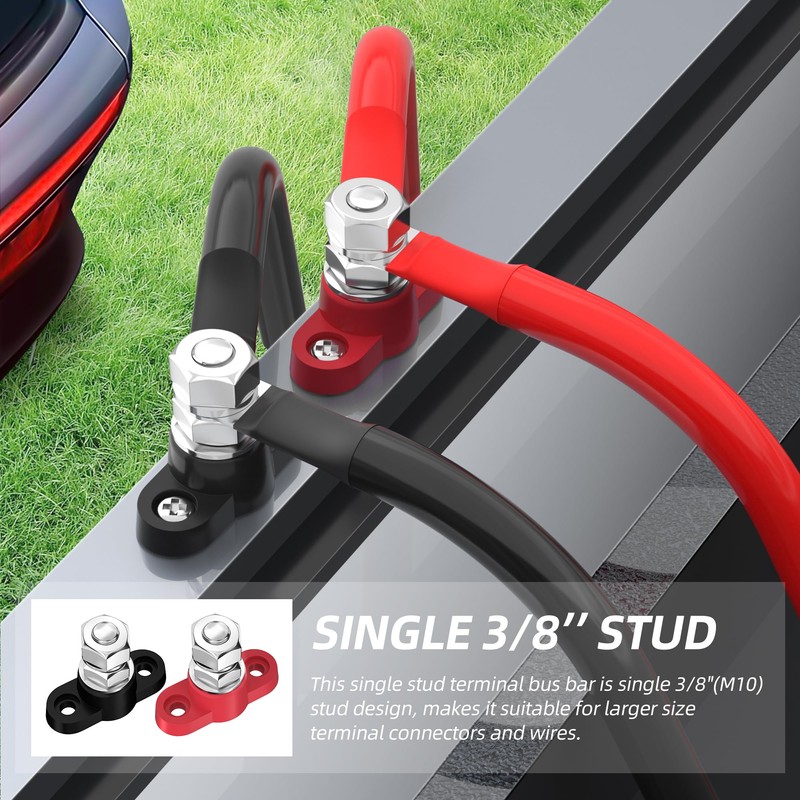 Joinfworld Bloque de distribución de energía Individual de 3/8 Pulgadas (M10) Barra de conexión de batería de Poste de conexión de 12V máximo 48V DC, par Positivo y Negativo