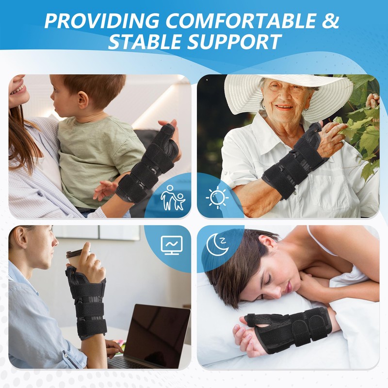 • 【THUMB SPICA SPLINT & WRIST BRACE】The Wrist and Thumb Spica Splint help treat and relieve pain caused by arthritis, breaks, fracture, wrist and thumb joint sprains or strains, trigger thumb, thumb tendonitis, wrist tendonitis, carpal tunnel syndrome, De Quervain's Tenosynovitis. As well as providing effective support for post-operative rehabilitation.