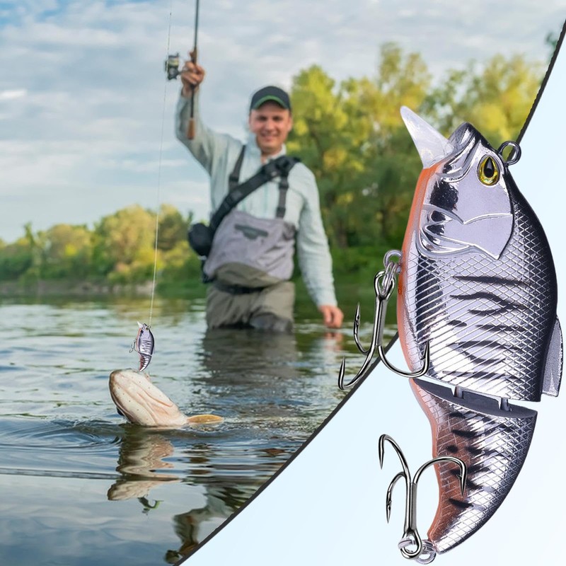 - Fishing Assist: This multi jointed lure is crafted to mimic the natural movements of baitfish, effectively attracting bass, pike, and trout for a successful fishing outing