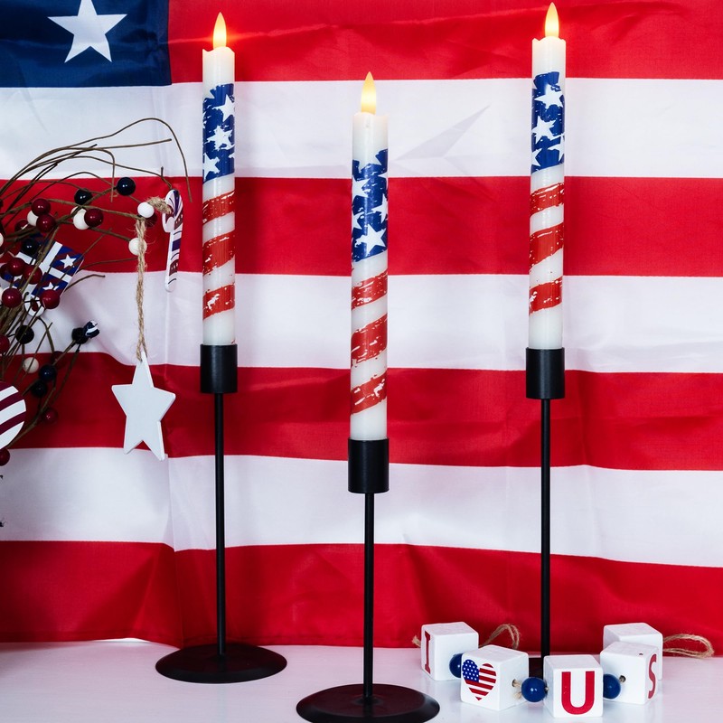 - Safe & Stylish Lighting for Patriotic Celebrations: Celebrate Independence Day with the beauty and safety of these flameless taper candles. Unlike traditional candles, these battery-operated patriotic candles eliminate fire hazards, making them a worry-free choice for homes with children and pets. Enjoy the charm of candlelight without the risk, perfect for indoor and outdoor July 4th decorations. NOTE: Each candle requires 2 AAA batteries (NOT included).