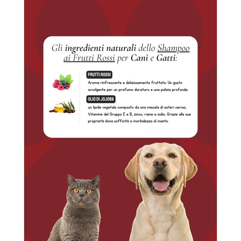Jojoba Dog Shampoo Red Fruit Concentrate Anti-Allergic Soft and Bright Nourishing Shampoo Gentle Shampoo Ideal for Dogs Short Fur and Long Hair 250ml (Red Fruit Scent)