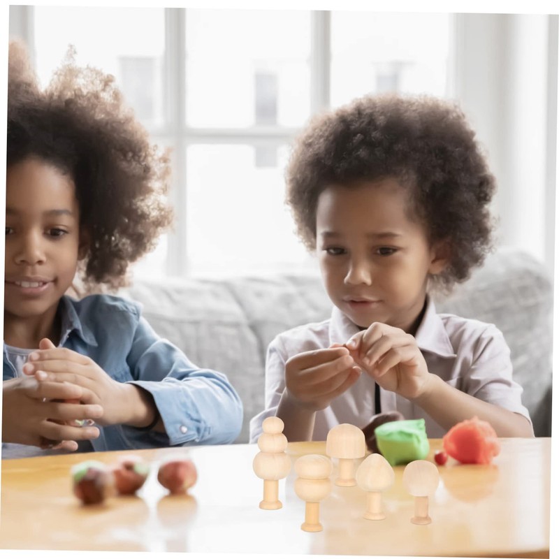 jojofuny 10pcs Unpainted Wooden Mushroom Set Assorted Smooth Texture Lightweight Miniature Crafting DIY for Creative Painting and Play
