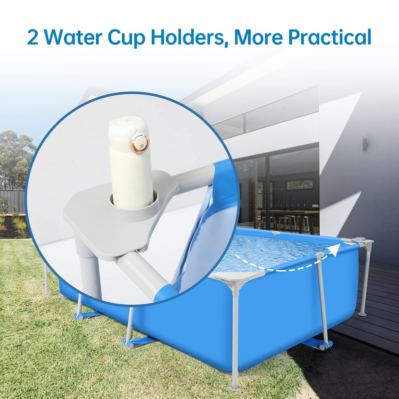 - SUPERIOR FRAME DESIGN: The pool frames are applied with a rust and corrosion-resistant coating to protect the pool from UV and abrasion damage. A 3-ply PVC support band surrounds the pool for additional stability to the pool wall. Designed with a cup holder for easier cup placement
