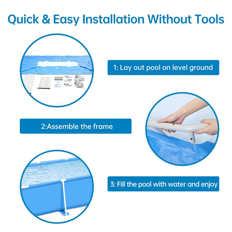 - EASY TO ASSEMBLE: No tools are required to install this above ground pool in your backyard. A flow-controlled drain valve provides a simple solution for emptying the excess water. Get ready for hot summer fun in minutes!