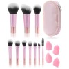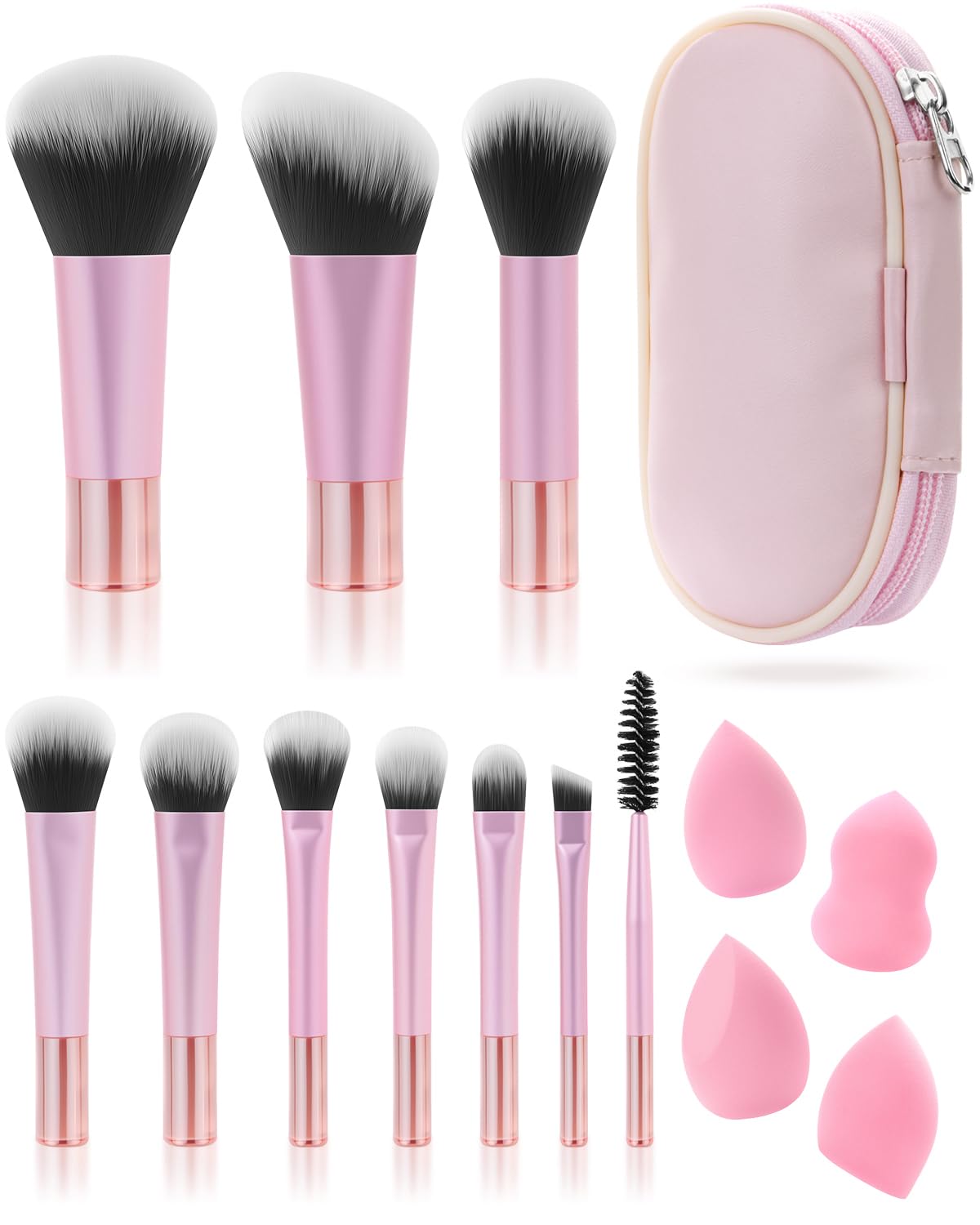 - Mini Makeup Brush Travel Set: 1 set includes 10 brushes, such as eyeshadow brush, powder brush, highlighter brush, blush brush, lip brush, eyebrow brush, and mascara brush, along with 4 makeup sponges, meeting your daily, outdoor, work, and travel makeup needs