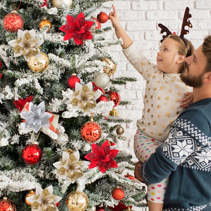 - Versatile: The Christmas glitter flower decoration is perfect for Christmas tree decorations, Christmas wreaths, flower decorations, table decorations, wedding decorations, living room decorations and much more.