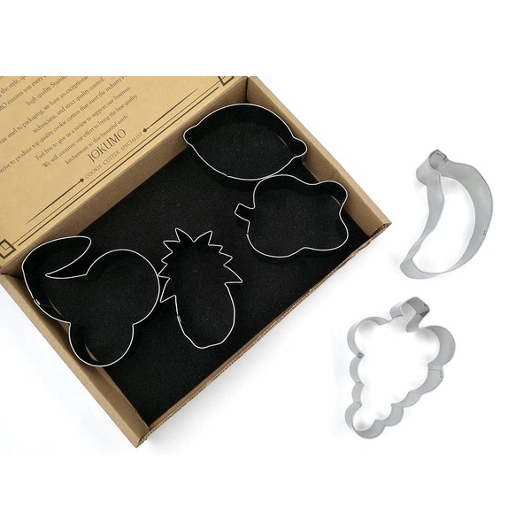 JOKUMO Fruit Cookie Cutters Set – 6PC High Grade 430 Stainless Steel –Apple, Banana, Cherry, Lemon, Grape, Pineapple