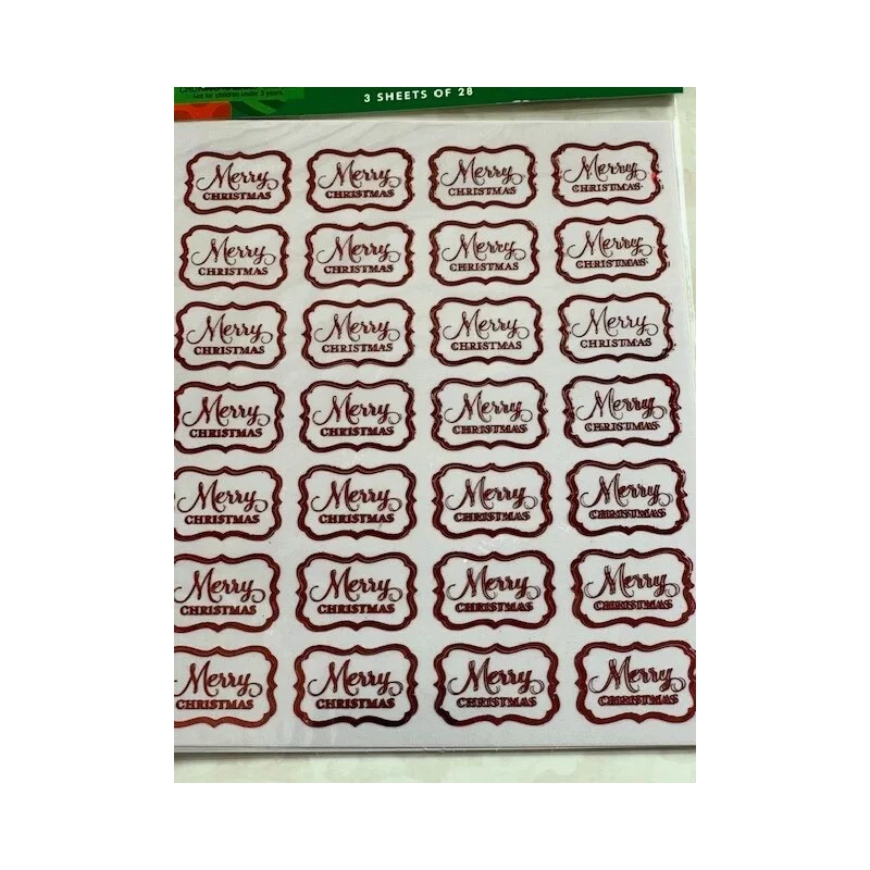 JOLEES RED MERRY CHRISTMAS WORDING WITH RED TRIM AROUND 3 SHEETS/84 PCS