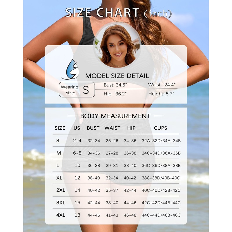 - Two Piece Bathing Suits Full coverage: Cute bathing suits completed with sports bra swimsuit top and womens swim shorts bottom. Full coverage bikini sets not see through, can make you feel secure. Ribbed swimwear is fashionable and more eye-catching