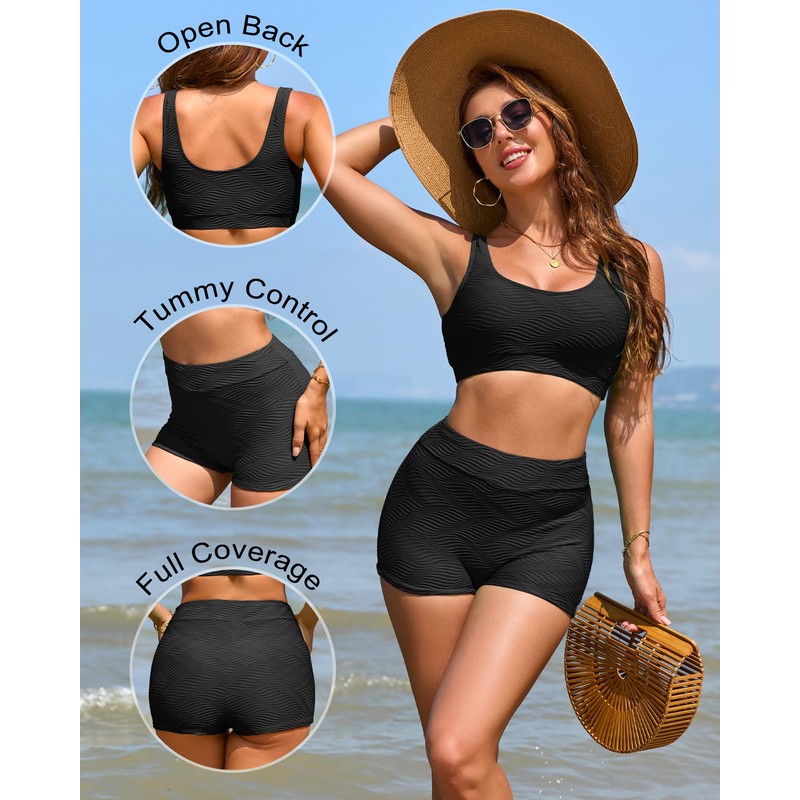 - Boyshort Swimsuit Bottoms: Swimsuit with shorts, full coverage bikini bottom cover the hips, perfect for teens. High rise bikini sets have wide waist band cover the belly button, mekes the tummy control swimsuits both stylish and comfortable