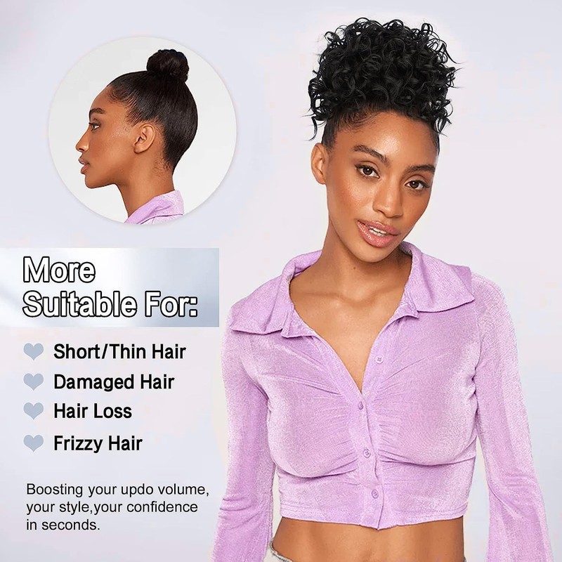 This curly drawstring ponytail is perfect for those days when you don't have your hair tied up yet but don't want to wear it in a baby ponytail. This voluminous bun ponytail gives you an all-natural look.