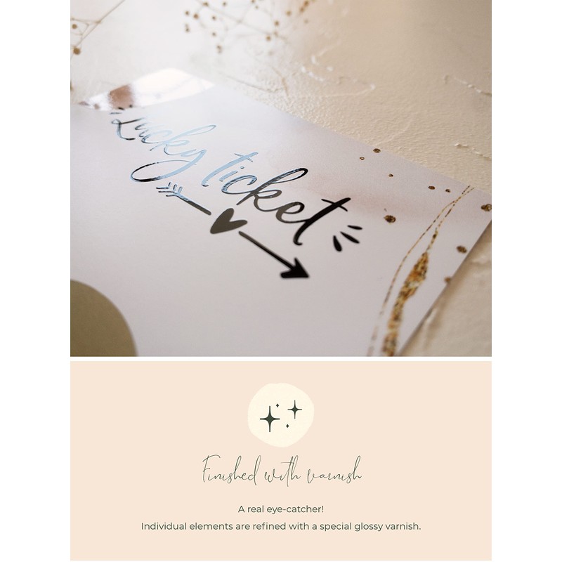 - You will receive a beautiful scratch card finished with UV varnish and with an envelope to meet the highest standards.