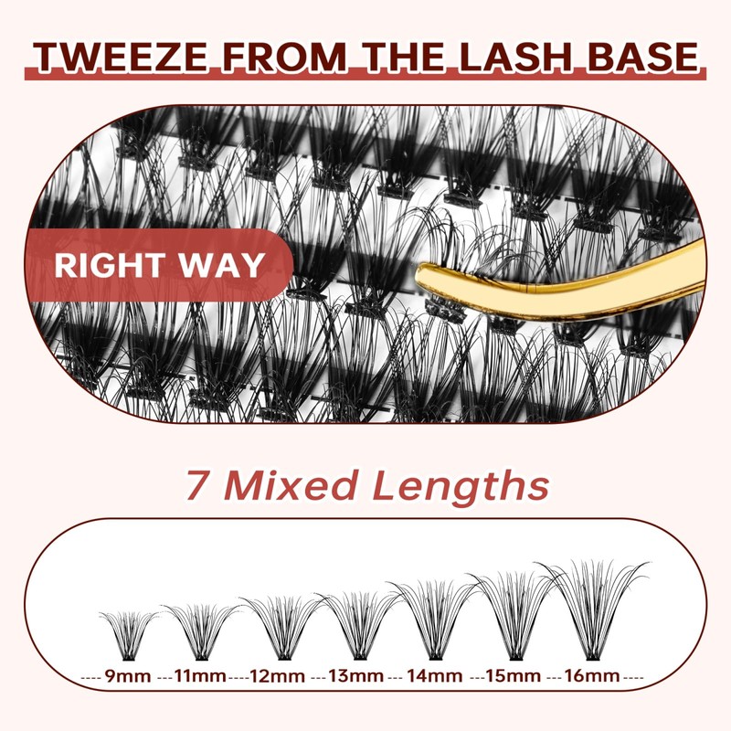 - Customizable Lash Styles for Every Occasion: The 8-16mm cluster lashes allow you to customize your look by choosing different lengths and volumes. Whether you’re going for a soft & fluffy daytime style or a dramatic evening volume, this kit offers the flexibility to create various eyelash extensions styles. Achieve the perfect natural curl or a more thick, voluminous lash look based on your personal preferences.