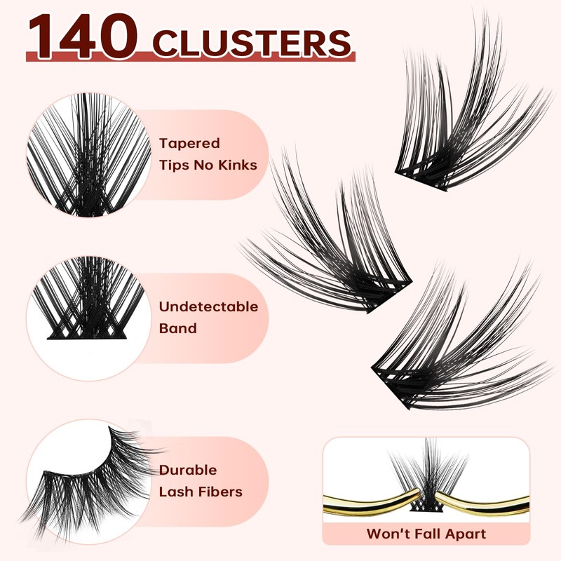 - High-Quality Faux Mink Individual Lashes: Crafted with high-quality faux mink fibers, these individual cluster lashes are soft, lightweight, and reusable, offering a natural wispy look that blends seamlessly with your real lashes. The waterproof bond & seal keeps them secure for up to 72 hours, and the lightweight design ensures all-day comfort. These lashes are ideal for creating both natural volume and dramatic looks.