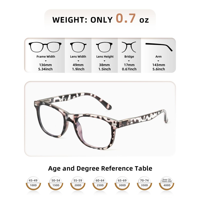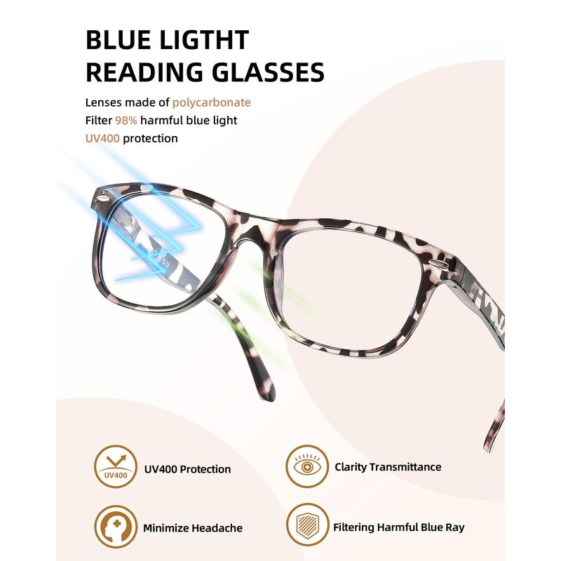 - RELIABLE QUALITY BRIGHT COLORS : Made with a one-piece nose pad and high-quality material, these blue-blocking reader glasses are durable, comfortable, and easy to match with different styles of clothes.