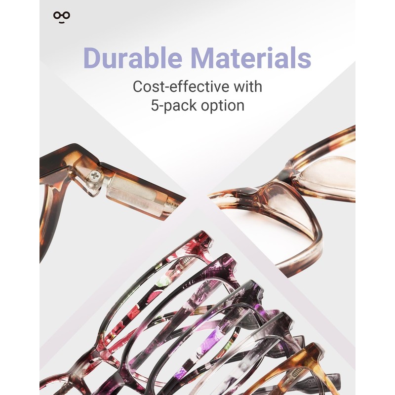 JOLISU JOLISU 5-Pack Ultra-Light Slim Frames Blue Light Glasses - Classic Style, Spring Hinges, Sturdy and Durable Cheaters, Blue Light Protection Reading Glasses +1.25