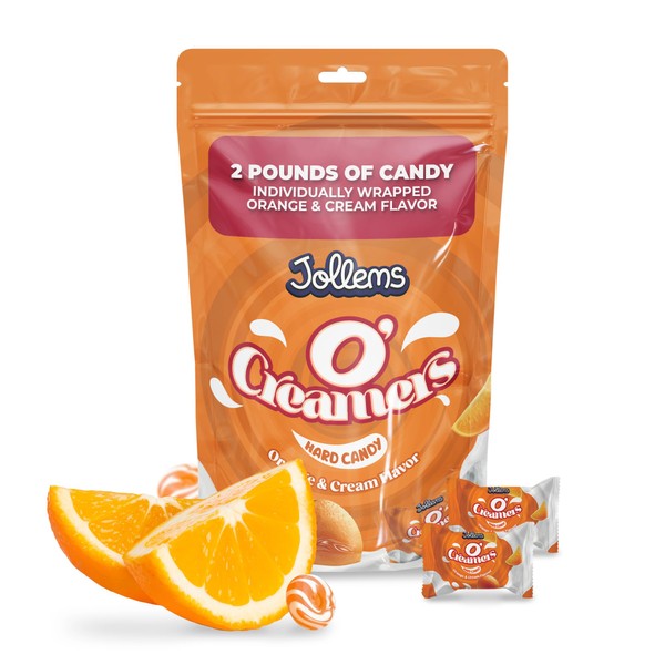 Jollems O’ Creamers Orange & Cream Flavored Hard Candy | Individually Wrapped | 2 Pound Bulk Bag