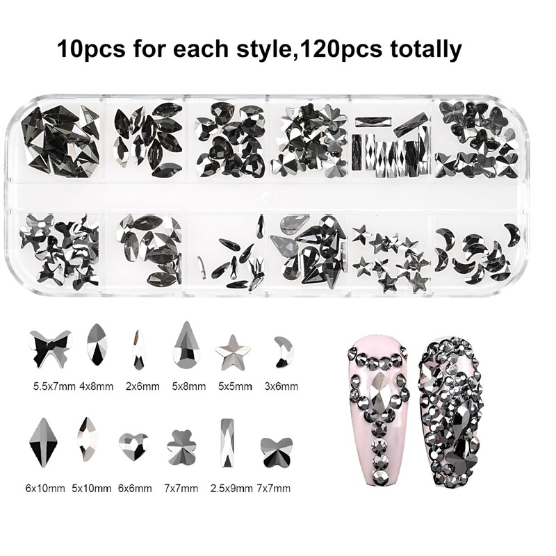 - Quantity:1920pcs in total, 1800pcs flat back rhinestones, 120pcs multi shape rhinestones.