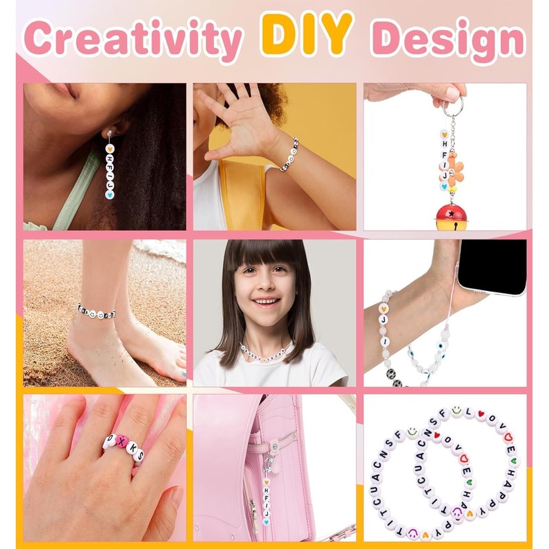 Jollin 2100pcs Letter Beads Charms Bracelet Necklace Earring Jewellery Making Kit Accessories for Key Chain Art Craft Birthday Gifts 4 x 7 mm