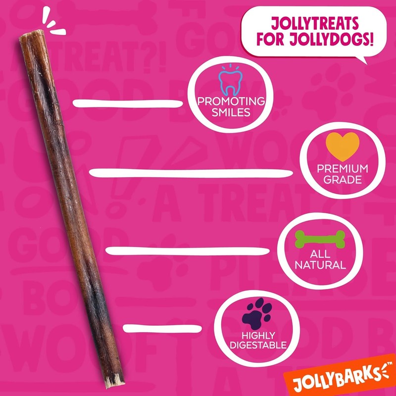 - SAFE CONSUMPTION - JollyBarks works hard to ensure our treats are healthy and safe for your puppy. These 12 inch bully sticks are fully digestible. A natural, low fat and protein rich treat for dogs, the bullies are that perfect healthy dog chew stick.