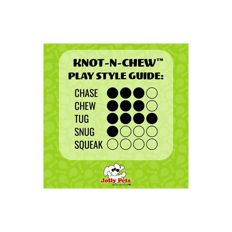 Jolly Pets' Knot-N-Chew dog toys offer a chewing challenge and tug toy all in one. Tightly woven rope fibers floss dog’s teeth as they chew and are more durable than traditional rope braid dog toys. This make the Knot-N-Chew dog toy perfect for teething puppies and strong chewers. Ideal for indoor or outdoor use, the Knot-N-Chew encourages interactive and solo play, and relieves pent up energy. Proudly offered by Jolly Pets. Jolly Pets is proud to support organizations nationwide that provide dog toys to dogs in shelters- we believe all dogs should be Jolly