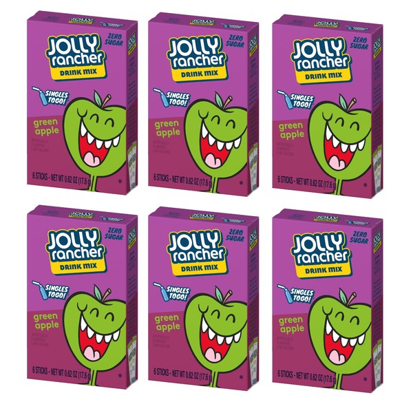SINGLES TO GO! Jolly Rancher Green Apple, 6 Boxes with 6 Packets each, 36 total servings