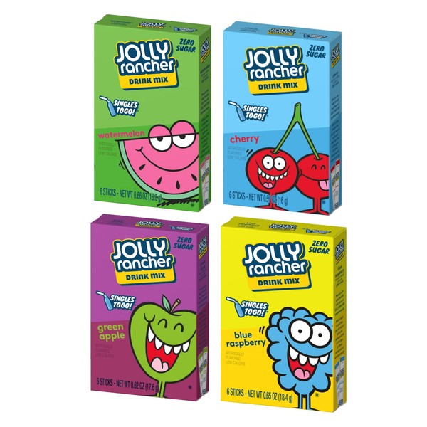 Jolly Rancher Singles to Go Drink Mix Variety 4 Pack - Green Apple, Watermelon, Blue Raspberry and Cherry