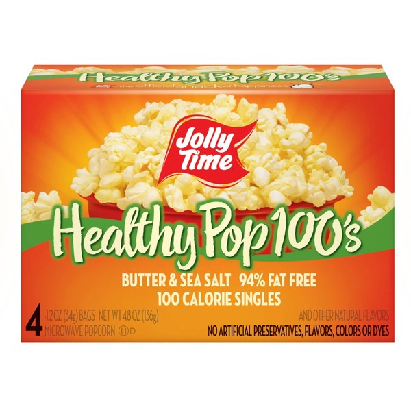 Jolly Time T Healthy Pop Microwave Popcorn, Low Fat Gluten Free Non-GMO (Healthy Pop 100's - Butter & Sea Salt, 1.2 Ounce (Pack of 4))
