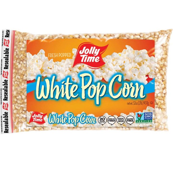 Jolly Time Unpopped Popcorn Kernels, Gourmet Popping Corn for Air Popper Machine or Stovetop, Non-GMO (White Pop Corn, 2 Pound (Pack of 4))