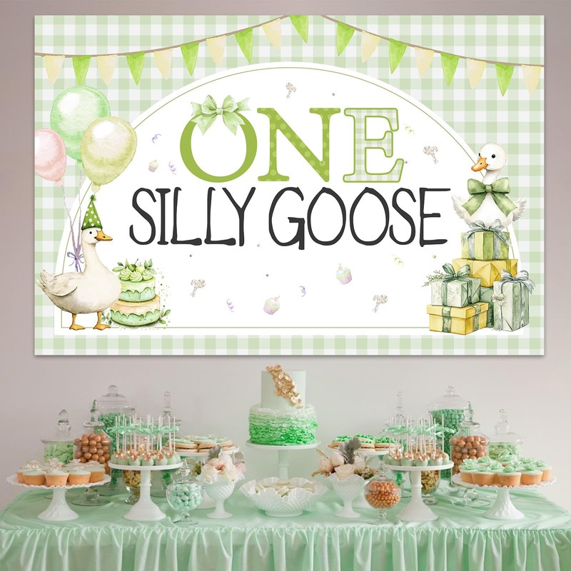 - Farm Animal 1st Birthday Party Decoration: The one silly goose backdrop banner features a vivid goose theme design with exquisite pattern, unique design. The goose theme patterns and realistic effects can capture a profound memory for everyone. As a photo background will leave a lasting impression on your guests