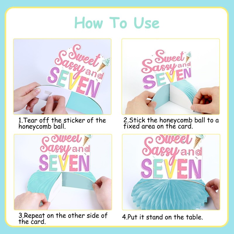 - Sturdy and Quality Material: Featuring quality and reliable card stock material, our sweet sassy and seven birthday table honeycomb centerpieces are sturdy, lightweight and long lasting. The quality printing ensures that their patterns are clear and the colors are bright and not easy to fade