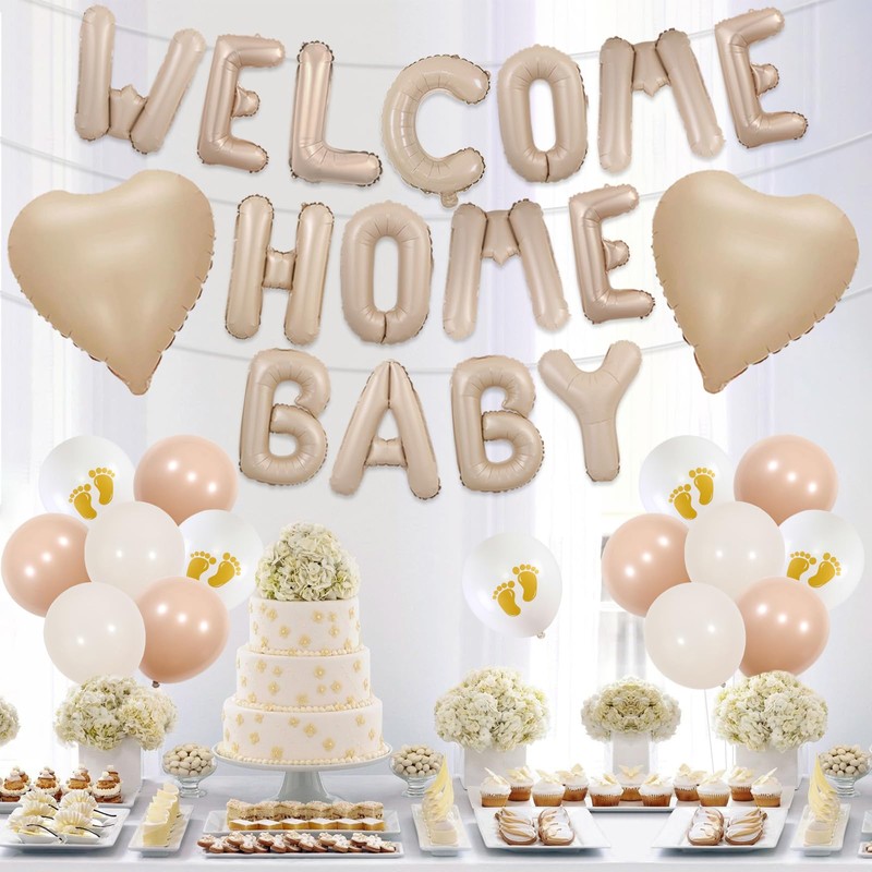 - Multiple Occasions: These neutral cream welcome home balloon decorations are not only designed for welcome home party for new born baby boy girl, but also intended for the newborn boys girls birthday party, it's a boy girl baby shower or gender reveal party