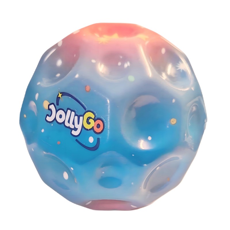 JollyGo Rainbow Moonball, Jumpball, 9.5 cm, Large Moon Ball, A Popping Sound, High Jumping Rubber Ball, Spaceball, Big Bouncing Balls, Moonball, Gift for Children, XXL, Easy to Grip (Sky Glow)