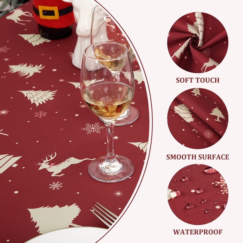 - 🦌WATERPROOF & SPILLPROOF -- The classic Xmas tablecloth is made of durable waterproof polyester fabric, protecting your table from scratch, oil and other spills, the perfect table cover protector for your table.