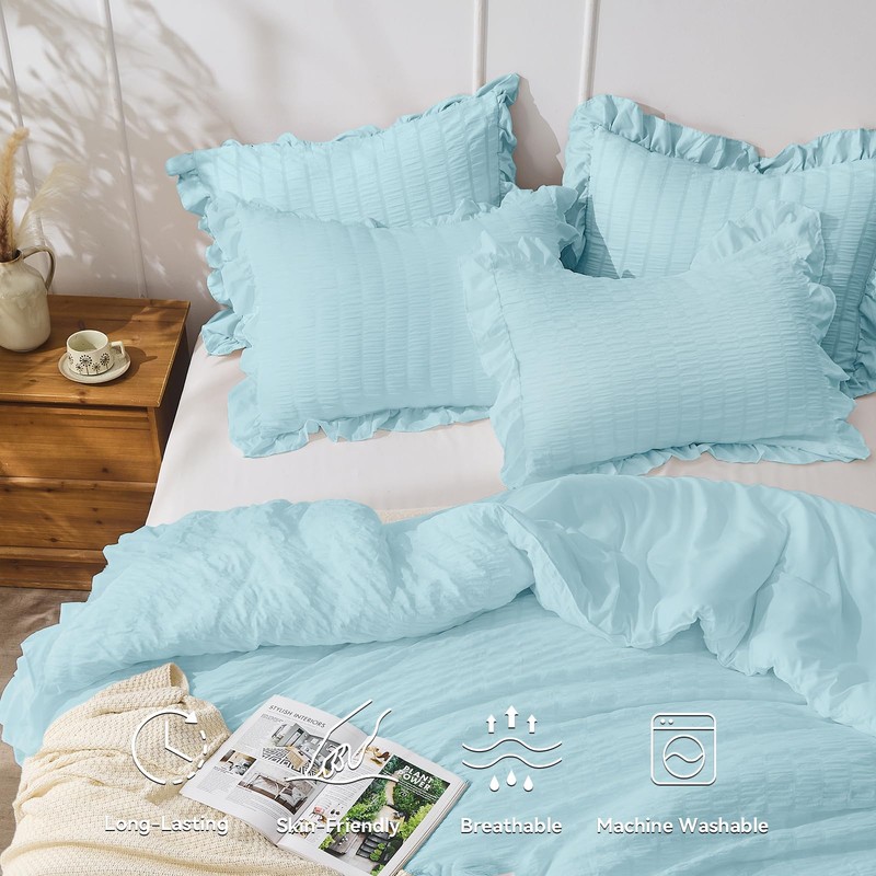 - Seersucker Material: Our twin comforter set is made of seersucker, this fabric is 65% more breathable than cotton. This means it's soft, lightweight, breathable and effective at wicking moisture to keep you dry all night