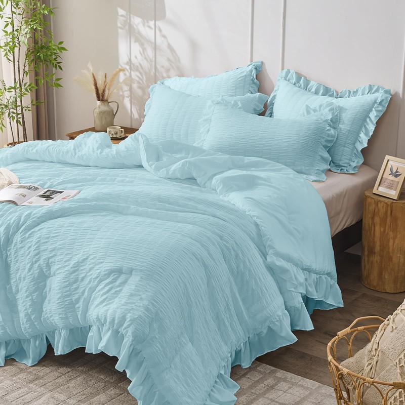 - Ruffle Design: Our comforter set features handmade ruffles. Choose our ruffled edge comforter to decorate your room, making the bedding more fashionable, adding a unique sense of romance and elegance to your room