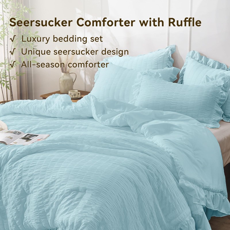 - Seersucker Material: Our twin comforter set is made of seersucker, this fabric is 65% more breathable than cotton. This means it's soft, lightweight, breathable and effective at wicking moisture to keep you dry all night