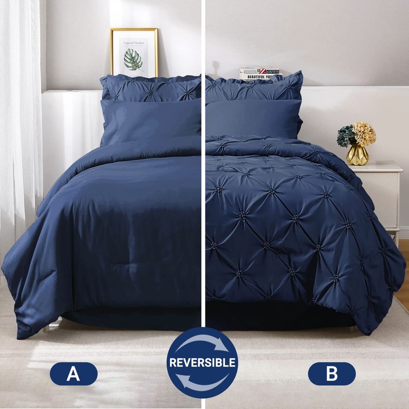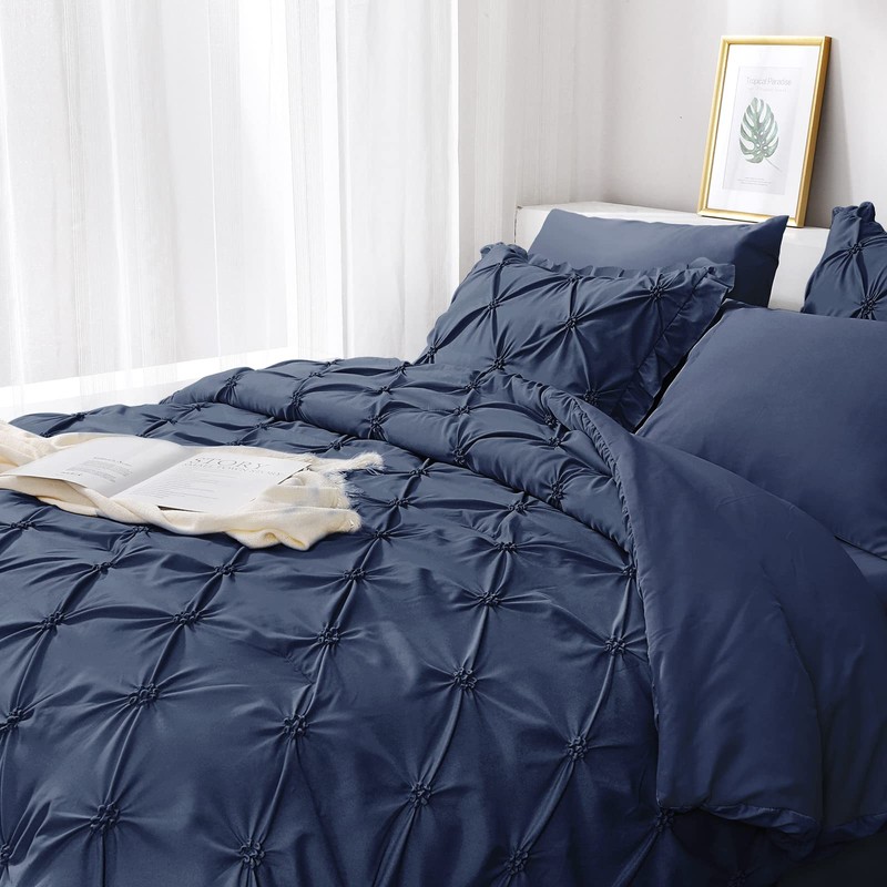 - [Elegantl Design]: These queen-size comforter sets are designed in a pinch pleated style that perfectly combines fashion and beauty. The pintuck and ruffled design on the two pillow shams add unique and fashionable taste to your bedroom.
